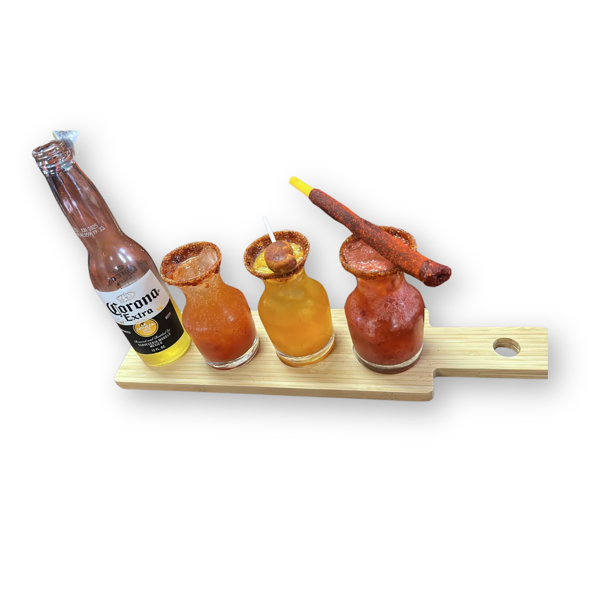Pick your flavor of any Jarrito soda, chamoy, Tajín chile powder, 1800 tequila with or margarita mix.