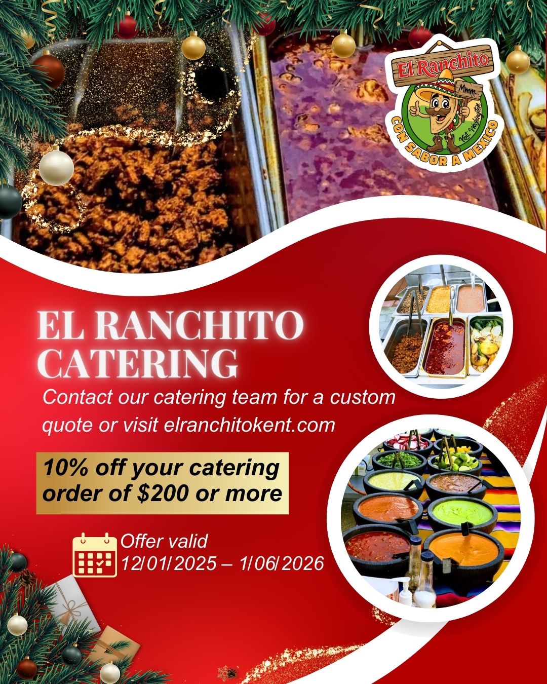 Contact our catering team for a custom quote or visit elranchitokent.com